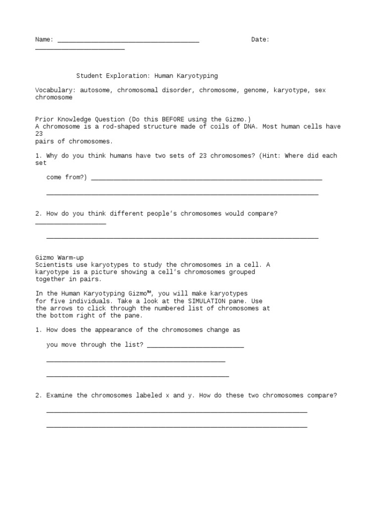 Answer Sheet Humankaryotypingse Gizmos - Student Exploration Human Karyotyping Kami Export Humankaryotypingse Pdf Javier Castel Name Date Student Exploration Human Karyotyping Vocabulary Autosome Chromosomal Disorder Chromosome Course Hero Student Exploration Human Karyotyping Gizmo - Maybe you would like to learn more about one of these?. Check spelling or type a new query. Maybe you would like to learn more about one of these? We did not find results for: